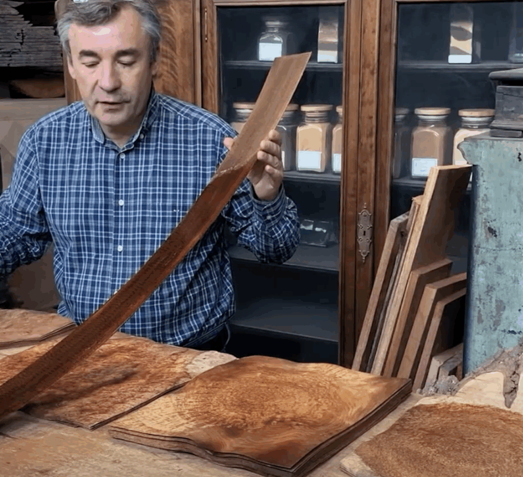 « Le placage scié est quelque chose de très rare. Aujourd’hui, on le trouve principalement en France »
