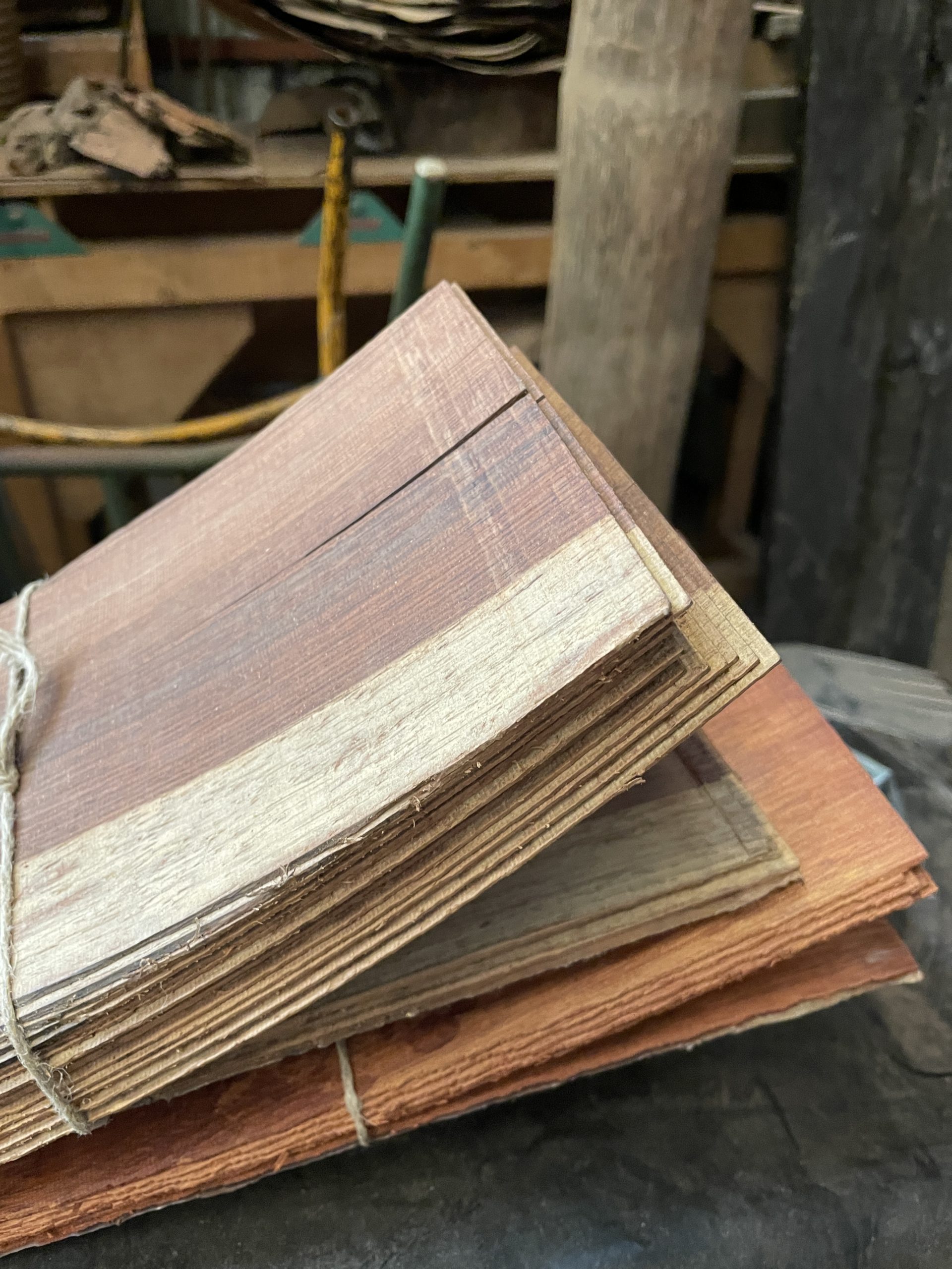 « Dans les écoles, on apprend surtout à travailler le placage industriel, tranché ou déroulé. Mais notre méthode est différente. Il faudrait que les jeunes puissent aussi apprendre à utiliser ces placages-là. Sinon, le savoir-faire risque de disparaître. »