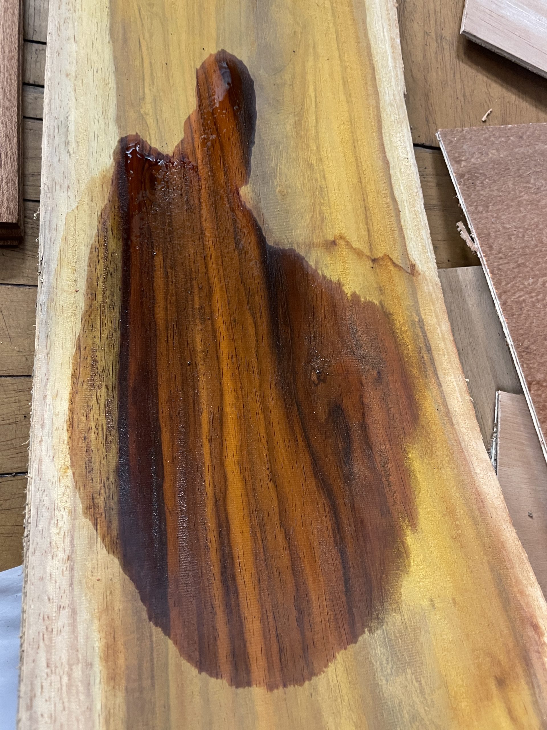 Les essences qui passent entre ses mains sont autant de trésors. Le palissandre révèle ses veines sombres comme des ombres en mouvement, l’amarante s’embrase de violet, le bois de rose diffuse son parfum subtil, le cocobolo flamboie de rouge et d’orange, les acajous se parent d’une chaleur dorée. Plus loin reposent les raretés : loupe d’amboine d’Indonésie, aux figures éclatées comme un soleil, thuya du Maroc, aux volutes brunes utilisées dans les meubles Napoléon III, séquoia géant aux motifs roux ; bois serpent de Guyane, dont les dessins rappellent la peau d’un reptile, ou encore le bois d’amourette, ponctué de taches sombres comme un pelage d’animal, dense et précieux.