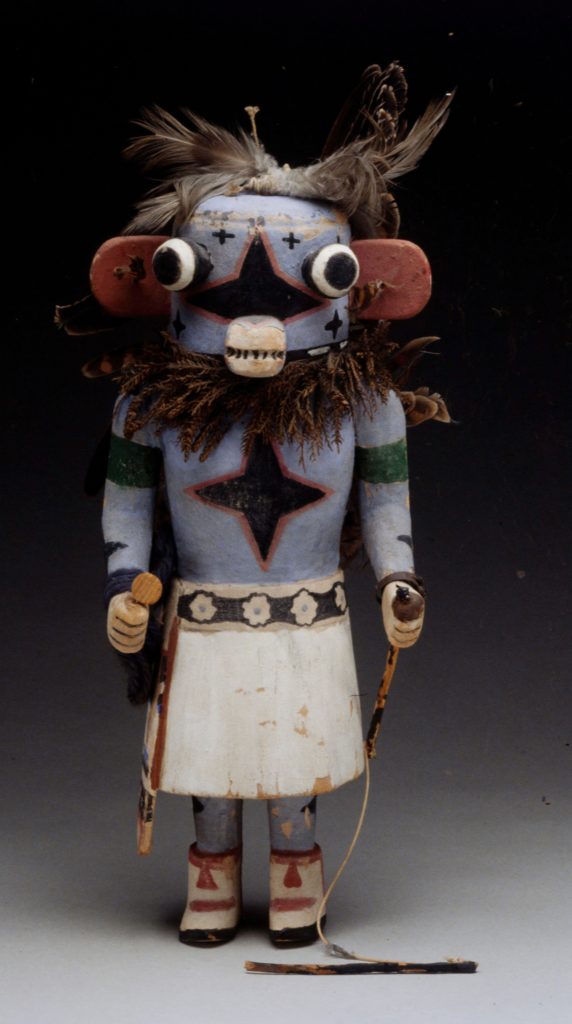 Pendant les pauses, des figures rieuses, les clowns sacrés veillent à l’ordre en amusant la foule . En effet pour les Hopi , la joie fait partie de l’équilibre du monde.